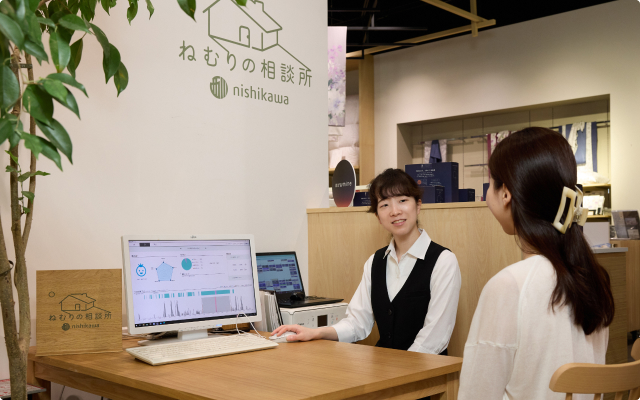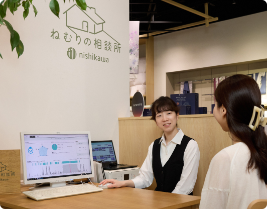 スリープマスターは、西川独自の研修と試験を経て認定された「眠りの専門家」です。睡眠環境や体型データをもとに、一人ひとりに合った寝具を提案します。日本橋西川では複数のスリープマスターが常駐しています。