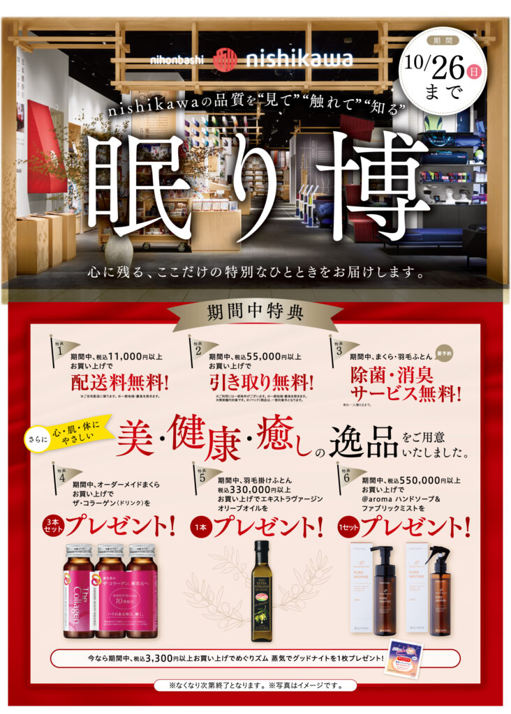 nishikawaの品質を見て・触れて・知る「眠り博」開催中!
