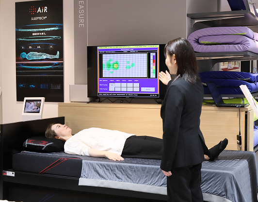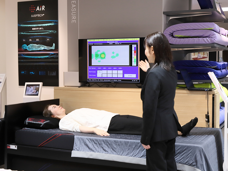 睡眠科学の専門研修を修了した「スリープマスター」が計測したデータをお客様と一緒に見ながら、お客様一人ひとりに適した理想的な睡眠環境のためのアドバイスを行い、寝具をはじめ、おやすみ前にリラックスできるグッズや眠る前に行うと効果的なストレッチなど、今までにない「眠りのツール」をご紹介いたします。